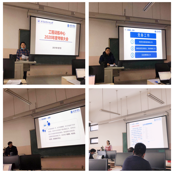 2021年1月7日,工程训练中心召开2020年度考核大会,全体教职工依次就全年工作进行述职,中心主任曹庆华、副主任兼党支部书记齐海涛、副主任韩永鹏及全体教职工参加会议。