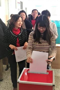 上午10时,大会在雄壮的国歌声中隆重开幕,首先由工会筹备小组组长马鹏举做了工会筹备工作报告,参会会员对筹备工作给予充分肯定。接下来,会议先后通过了选举办法、工会委员候选人提名人选名单、监票人、总监票人名单,公布了计票人名单等。在总监票人主持下,全体参会工会会员通过无记名投票方式进行了差额选举,每名工会会员都投下了庄严而神圣的一票。大会从9位候选人中差额选举产生了7位工程训练中心直属工会委员会委员。