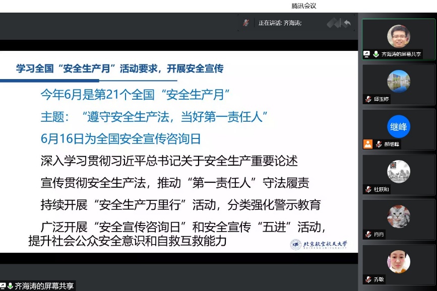 6月15日,工程训练中心通过线上形式开展“安全生产月”教育活动。中心副主任兼党支部书记齐海涛带领全体教职工学习了第21个全国“安全生产月”的主题、要求等具体内容,对中心未来实习安全工作提出了明确要求。随后,大家一起观看了生产安全事故警示片《十大典型缠绕卷入》。
