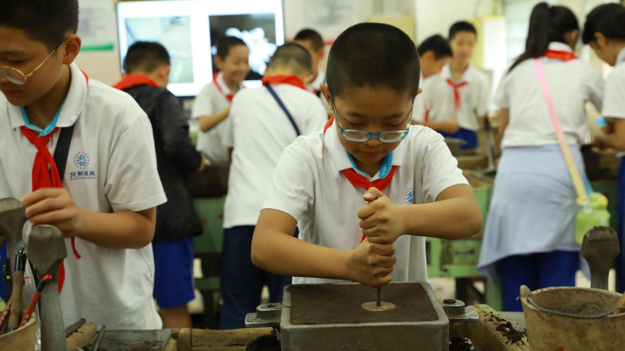 在砂型铸造单元,学生们了解了传统加工制造技术在现代科技工业中的重要地位,亲手翻砂、造型,体验这项传统加工技术。
