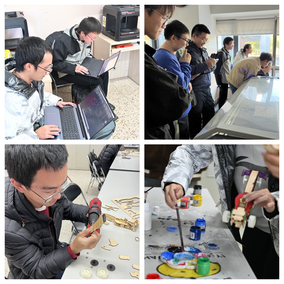 在决赛阶段,选手们需要在限定时间内重新设计小车,并完成加工和组装。同学们展现出了极高的热情和才华,认真投入比赛,争分夺秒,用短短的4个小时完成了画工程图、加工、切割、打磨、组装并装饰小车,每一个步骤都一丝不苟,充分考验了同学们的实践和学以致用的能力。