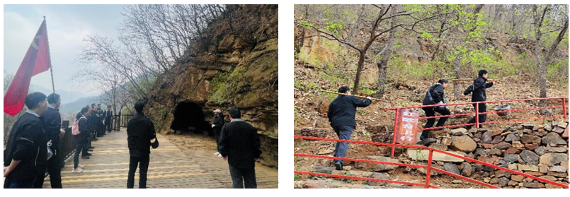 党支部一行首先抵达红谷基地,在平谷第一个党支部诞生地“红崖洞”由讲解员讲述第一党支部的来历和英烈故事。全体党员在红崖洞重温入党誓词,新党员进行宣誓。