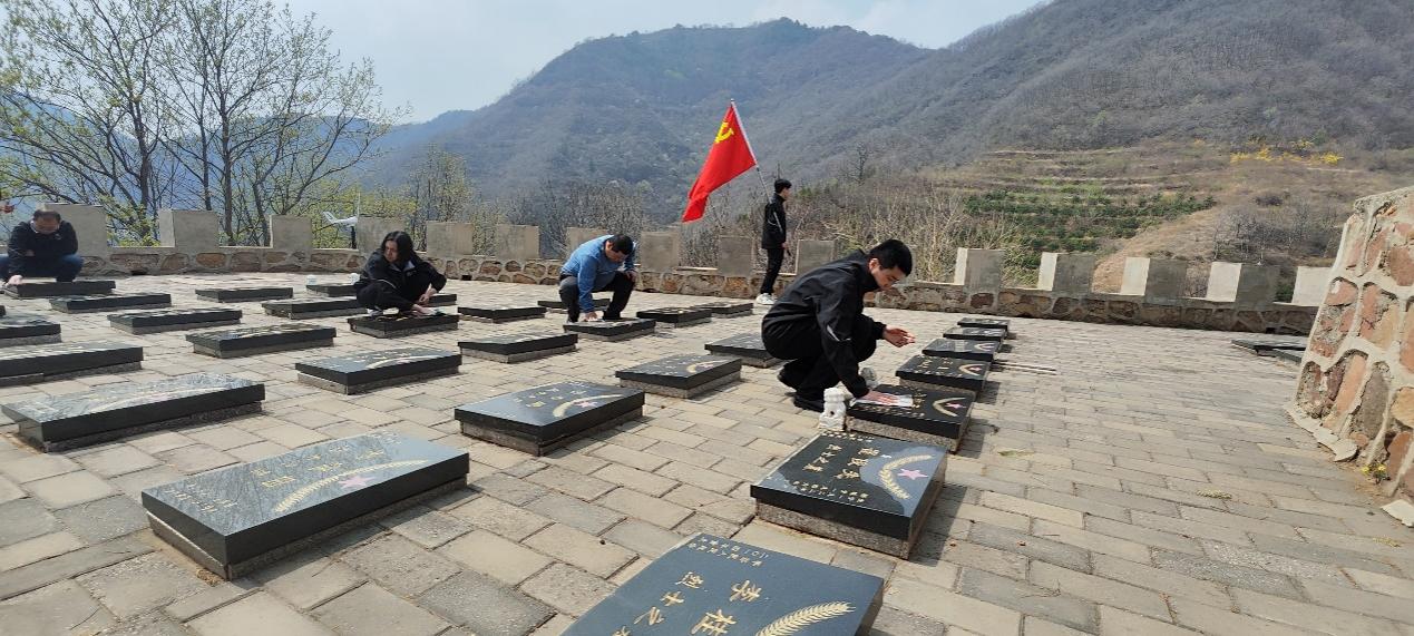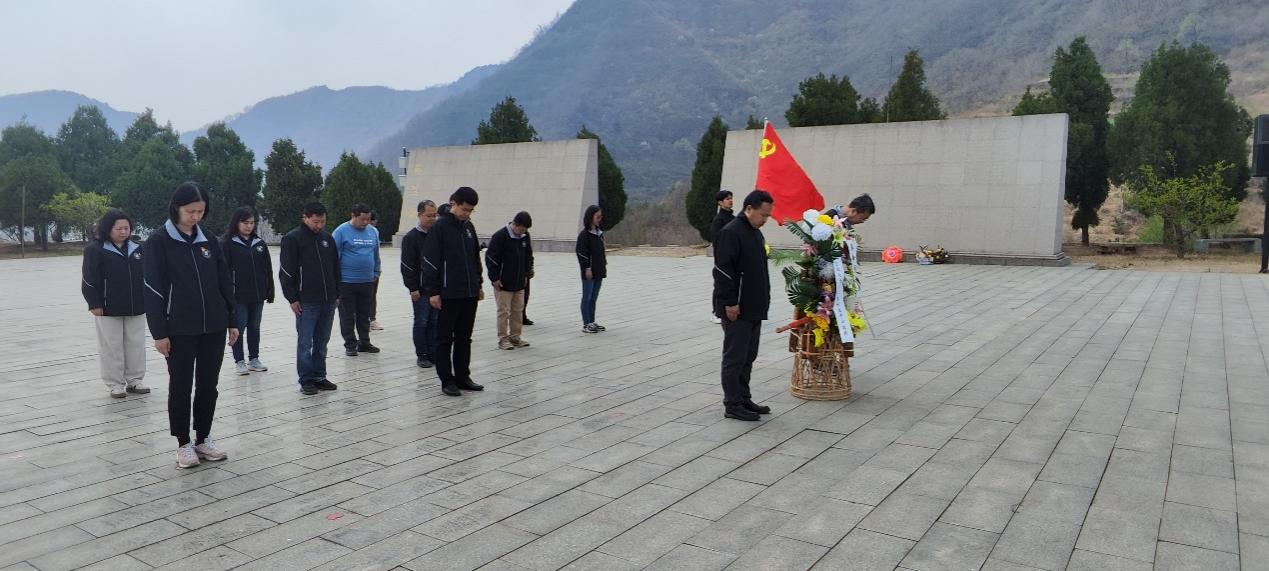 在英烈园,党员和老师们认真聆听讲解员讲述英烈园的建设过程及英烈故事,并举行祭奠烈士的仪式。