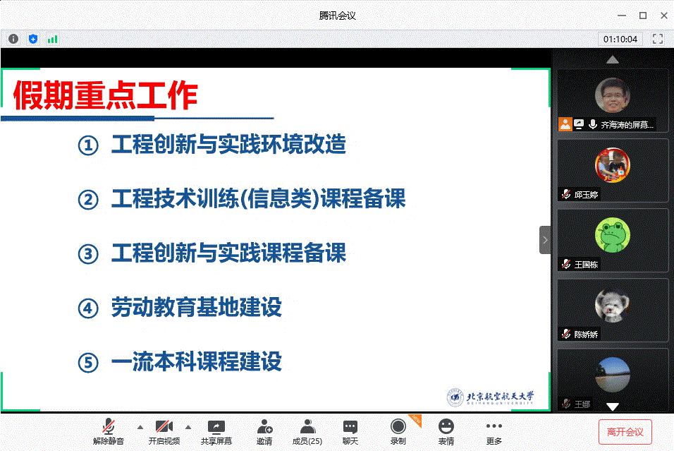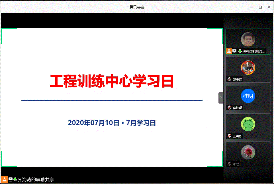 7月10日下午,工程训练中心全体教职工集体开展2020年7月“学习日”线上集体学习活动,本次学习由中心副主任兼党支部书记齐海涛主持。