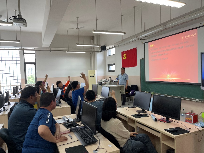 本次活动经中心支委会认真组织和广泛动员,共有45名教职工参与在线答题,尚金英、何立新等10名选手以初赛满分且用时靠前的优异成绩挺进决赛。决赛赛场上每位选手斗志昂扬,在答题过程中争分夺秒、越战越勇,竞赛气氛紧张热烈。活动设置主持人与观众互动环节,台下教职工积极参与、竞相抢答,现场气氛十分活跃,充分调动广大教职工参加竞赛活动的主动性和积极性。经过几轮比拼,何立新以最高分获得冠军,李亚鹏等其他选手分别获得一等奖、二等奖和三等奖。