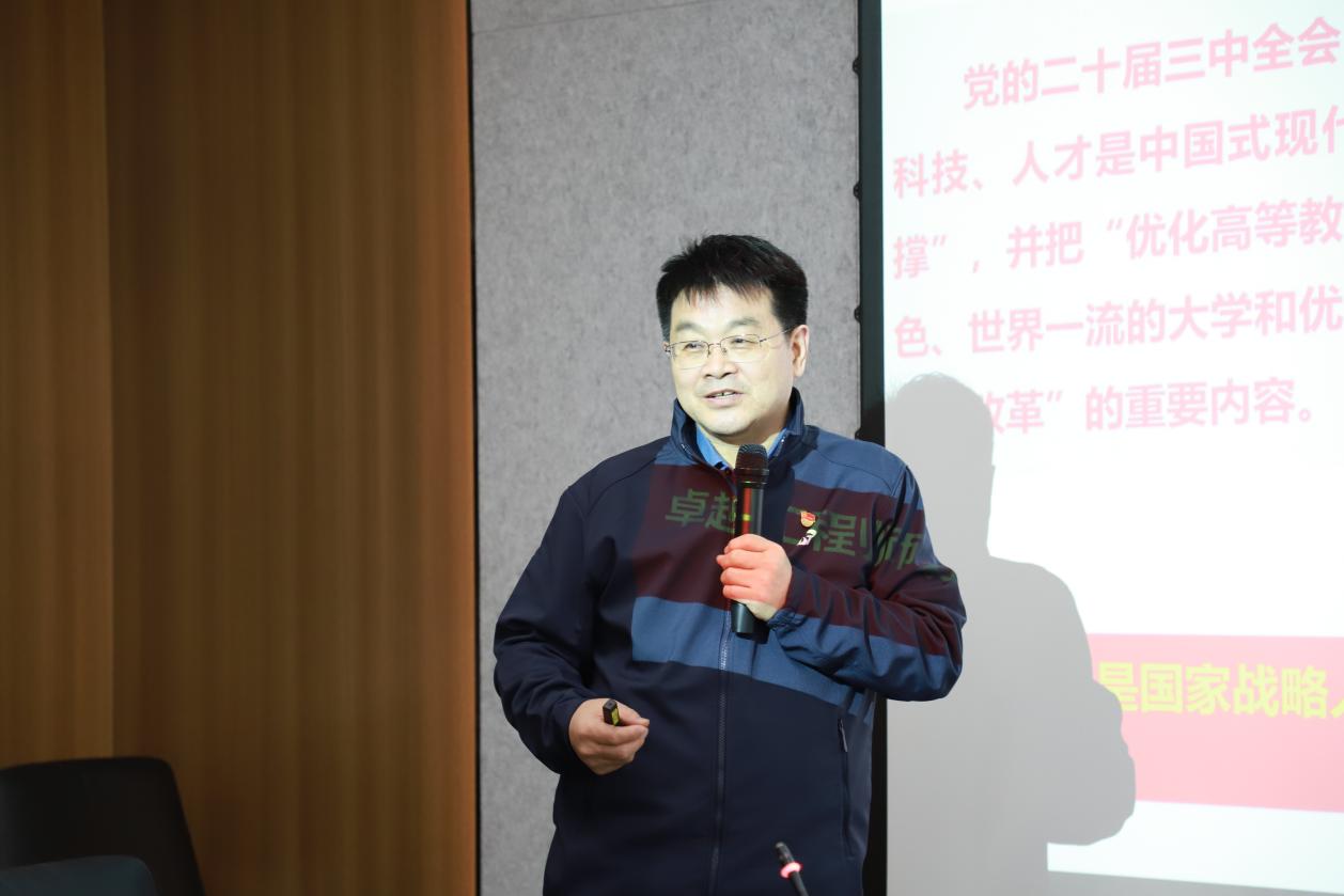 华中科技大学工程实践创新中心主任王书亭围绕《党建引领,构建面向卓越工程师培养的工程训练教育体系》作主题报告。他强调了工程实践教学要适应国家发展需要,深化智能制造高端人才培养的必要性,通过实例与数据说明当前工程实践教育面临的问题,并进一步提出建设举措。